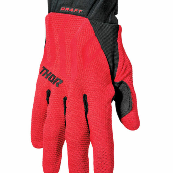 Rękawice cross Thor Draft zapewniają idealne dopasowanie i wyczucie kierownicy. Oddychająca i rozciągliwa w czterech kierunkach tkanina mesh gwarantuje świetną wentylację oraz pełną swobodę ruchu. Jednowarstwowa dłoń z zamszu AX Suede® pozwala na doskonałe wyczucie osprzętu motocykla. Dodatkowo posiada ona perforację, która zwiększa przepływ powietrza. Dla lepszej kontroli dźwigni końcówki palców pokryto silikonem. Rękawice posiadają formowany mankiet z biopianki, który zapewnia lekkość i bezpieczne dopasowanie. Ząbkowany otwór na nadgarstek zapewnia łatwy dostęp, a zapięcie na rzep solidnie utrzymuje rękawice na dłoni.
