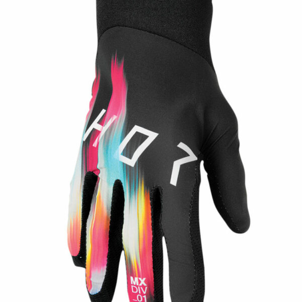 Thor Agile to niezwykle komfortowe rękawice na crossa, które dzięki elastycznej i oddychającej konstrukcji zapewniają wygodną i niezakłócona jazdę. Spód rękawicy wykonany jest z jednowarstwowej tkaniny Clarino®, która poprawia wyczucie kierownicy. Producent umieścił na niej perforację w celu zwiększenia przepływu powietrza. Dla lepszej kontroli dźwigni końcówki palców pokryto silikonem. Wygodny mankiet z neoprenu kończy się tuż za nadgarstkiem. Posiada on solidne zapięcie na rzep, które bezpiecznie utrzymuje rękawicę na dłoni. Model Agile dostępny jest aż w 6 różnych wariantach, dzięki czemu każdy znajdzie coś dla siebie.
