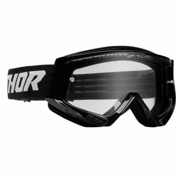 Gogle motocyklowe dziecięce Thor Combat Racer oferują bezpieczną i komfortową jazdę. Wygodny pasek z regulacją zapewnia idealne dopasowanie, a silikonowy nadruk utrzymuje bezpiecznie gogle na kasku. Solidna rama posiada otwory wentylacyjne, które zapewniają odpowiednią cyrkulację powietrza. Wygodna, jednowarstwowa pianka o grubości 12 mm idealnie przylega do twarzy zapewniając bezpieczne uszczelnienie. Wyposażone w soczewki wykonane z materiału odpornego na zarysowania, posiadają powłokę chroniącą przed zaparowaniem oraz szkodliwym promieniowaniem UV. Wraz z goglami otrzymujemy miękki pokrowiec do bezpiecznego przechowywania. Gogle można opcjonalnie wyposażyć w system Total Vision, który zapewnia jeszcze lepszą widoczność podczas błotnistej jazdy.