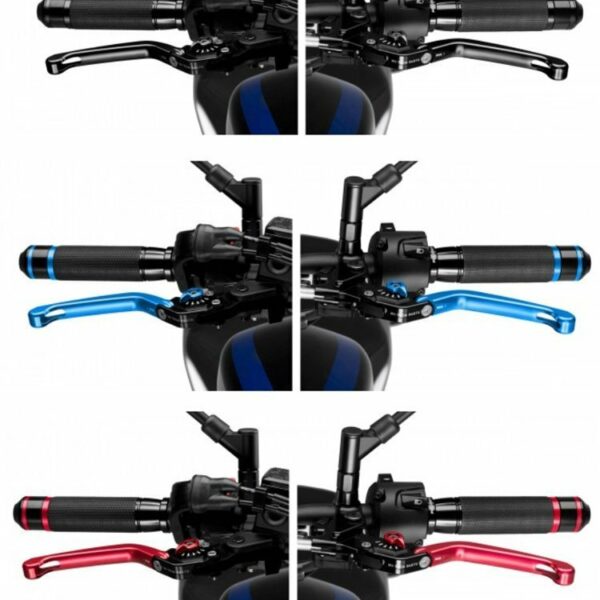 Zestaw regulowanych, sportowych klamek - komplet: dźwignia sprzęgła, dźwignia hamulca i odpowiednie mocowania do motocykla.