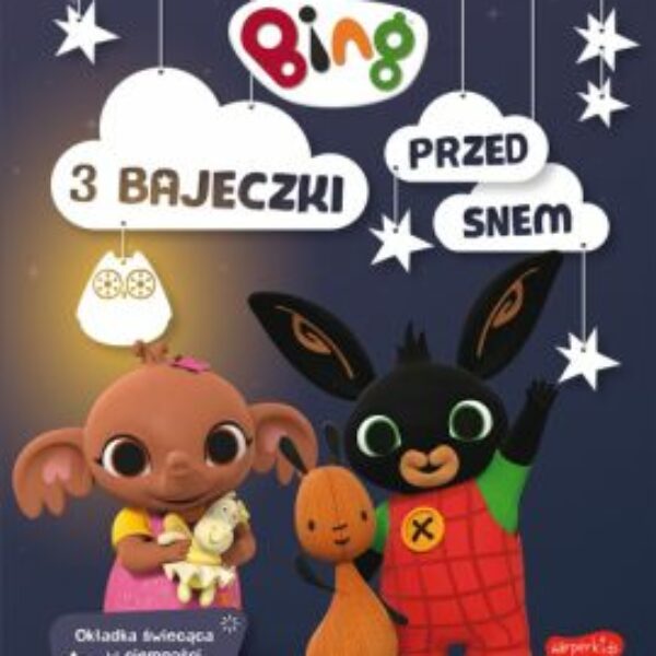 Czym jest recykling i co można zrobić ze starych kaloszy? Jaką zabawkę kupi Bing za własne pieniądze? Jak się zakończyło czytanie bajek w wannie? Trzy urocze i mądre opowieści o przygodach Binga ukołyszą malucha do snu, a świecąca w ciemności okładka sprawi, że rytuał wspólnej wieczornej lektury nabierze wyjątkowej aury! Aby podziwiać efekt świecenia, wystarczy naświetlić okładkę książki pod lampą lub zostawić ją na chwilę w jasnym pomieszczeniu. Lakier użyty na okładce jest w pełni bezpieczny dla dzieci, a dzięki zaokrąglonym rogom książka nadaje się nawet dla kilkulatków. W zbiorze znalazły się niepublikowane wcześniej opowieści napisane na podstawie odcinków serialu o przygodach Binga – Kalosze, Wybór i Opowiadanie na dobranoc.