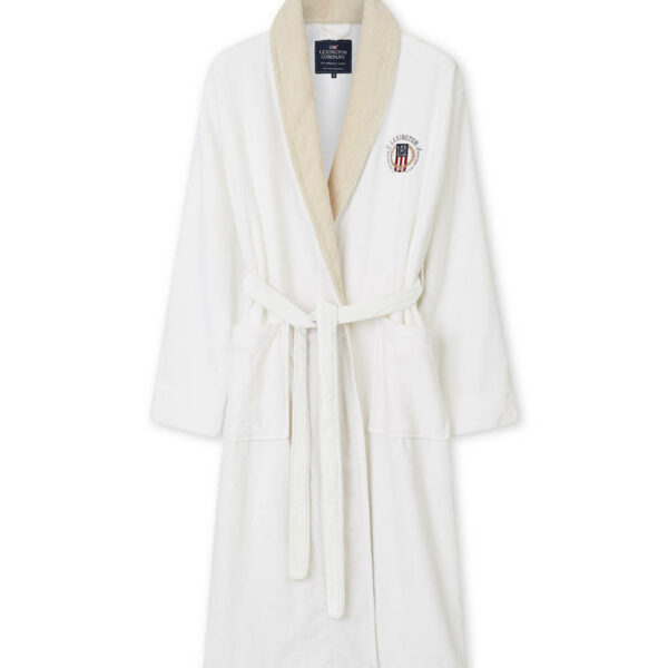 Wyjdź z zaparowanej łazienki w tym stylowym i luksusowym szlafroku uszytym z pluszowego bawełnianego weluru. Z przodu logo Lexington pojawia się w postaci haftu i stylizowanego emblematu.