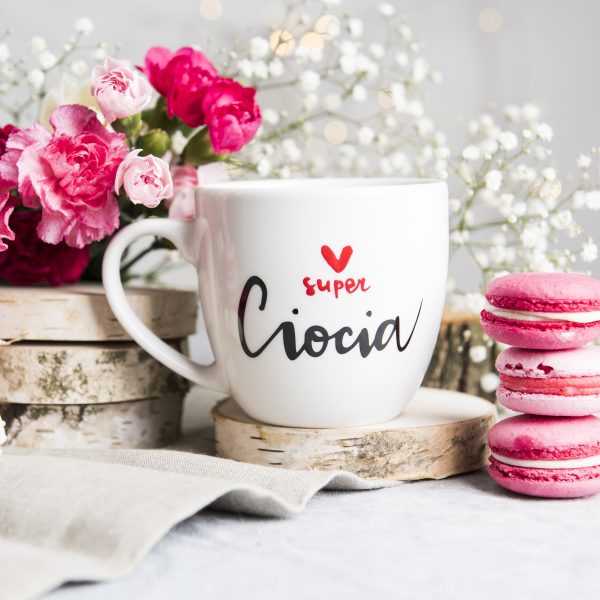 Kubek z napisem - super Ciocia - ręcznie malowany, porcelanowy kubek.