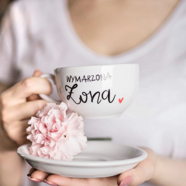 Nadzwyczajna, porcelanowa, ręcznie zdobiona filiżanka z napisem - Wymarzona żona
