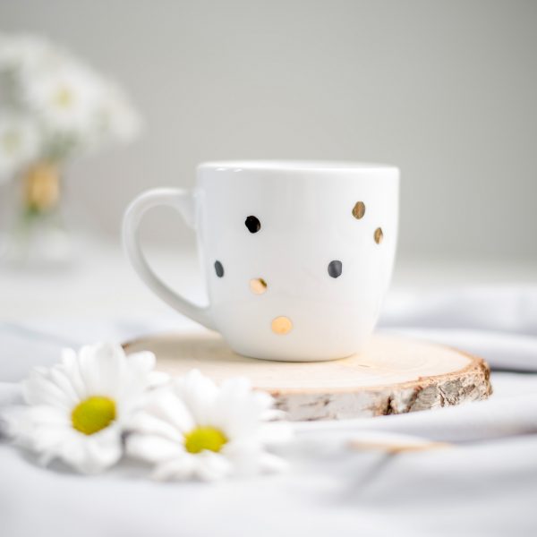 Nadzwyczajny, porcelanowy, ręcznie zdobiony prawdziwym złotem - kubek w kropy
