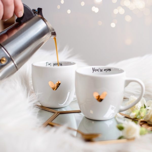 Nadzwyczajny, Zestaw kubków porcelanowych ze złotem I'm yours | You' re mine