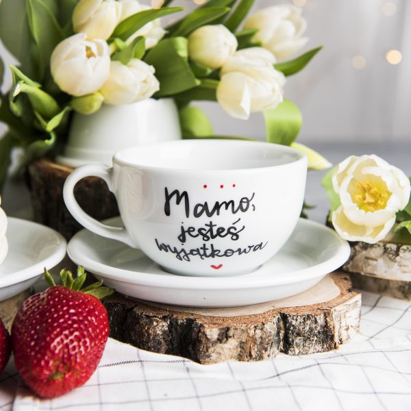 Nadzwyczajna, porcelanowa filiżanka z napisem - Mamo, jesteś wyjątkowa