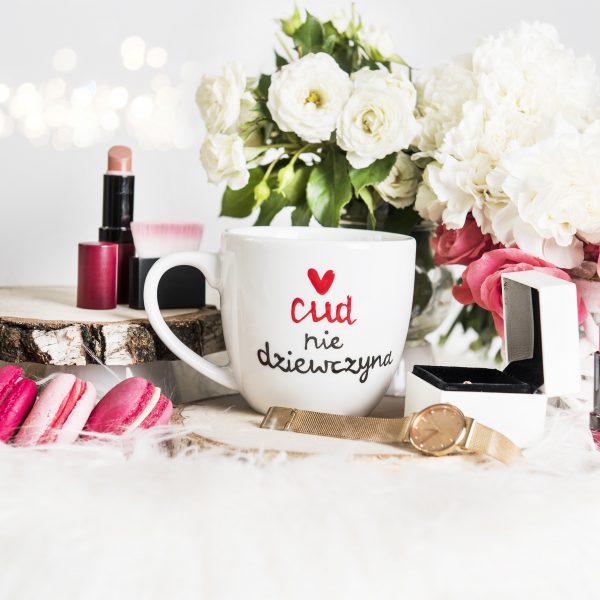 Jeśli Twoja dziewczyna jest świetnie zorganizowana, dba o Ciebie, prasując Ci koszulę, robiąc Ci pyszne śniadania, obiady lub kolacje, nie jest dziewczyną, ale istnym cudem! Nadszedł czas, aby jej za to podziękować! Nadzwyczajny kubek z napisem „Cud nie dziewczyna” pomoże Ci wyrazić wdzięczność za troskę, jaką ukochana obdarowuje Cię każdego dnia