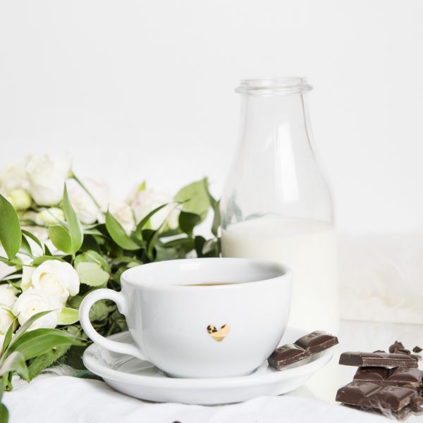 Nadzwyczajna, porcelanowa, ręcznie malowana prawdziwym złotem - Filiżanka ze spodkiem 250ml- serce