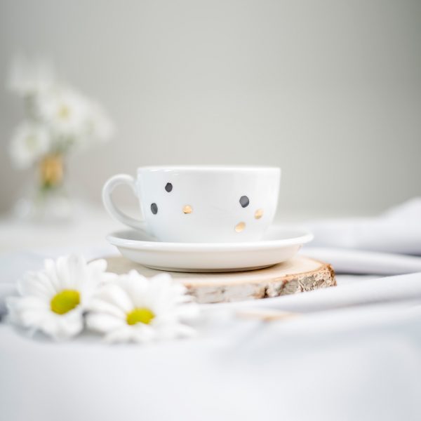 Filiżanka 250 ml - zdobiona złotem - Kropy