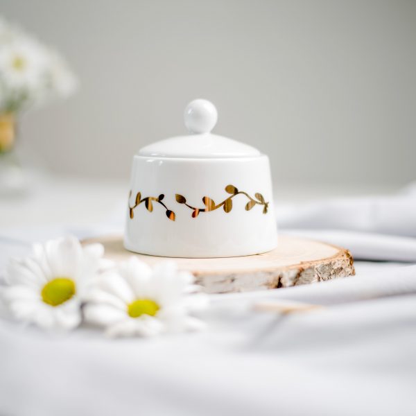 Nadzwyczajna, porcelanowa, zdobiony Cukiernica - zdobiona złotem - Listki