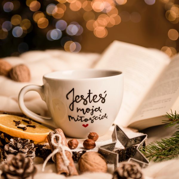 Nadzwyczajny, porcelanowy kubek z napisem - Jesteś moją miłością.