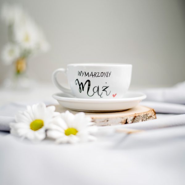 Nadzwyczajna, porcelanowa, ręcznie zdobiona filiżanka z napisem - Wymarzony mąż