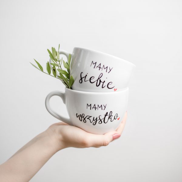 Nadzwyczajny, zestaw porcelanowych kubków 500 ml z napisem - Mamy siebie | Mamy wszystko