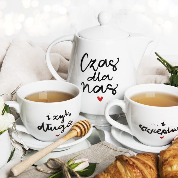 dzbanek czas dla nas + filiżanki 500 ml ze spodkiem i żyli długo i szczęśliwie