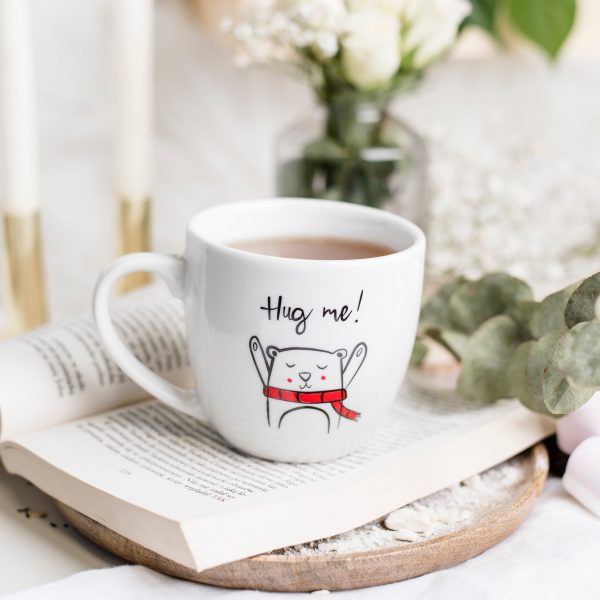 Nadzwyczajny, ręcznie malowany porcelanowy kubek - Hug Me!