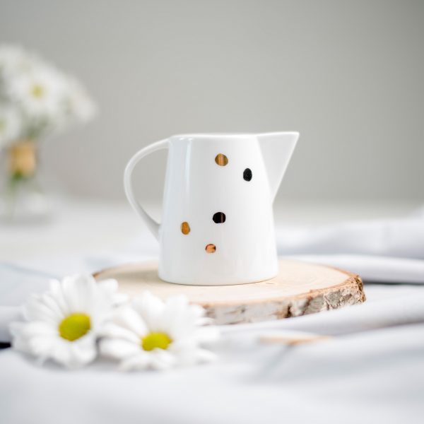 Nadzwyczajny, porcelanowy, ręcznie zdobiony mlecznik zdobiony złotem - Kropy