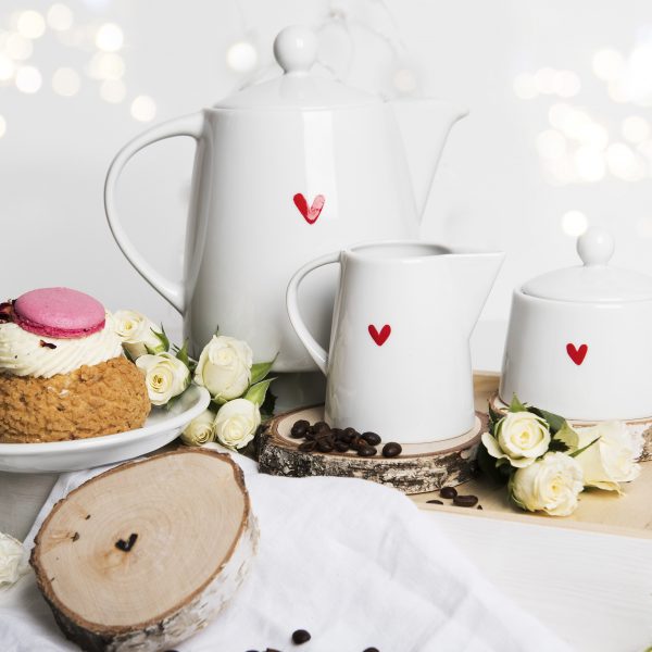 Zestaw: Dzbanek + cukiernica + mlecznik - czerwone serce