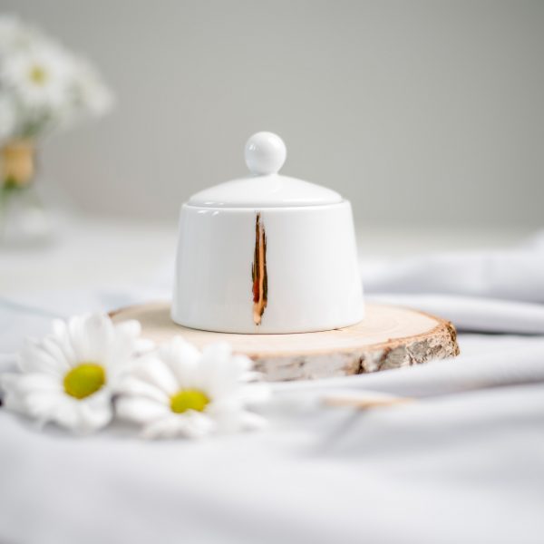 Nadzwyczajna, porcelanowa, zdobiony Cukiernica - Złote zdobienie proste