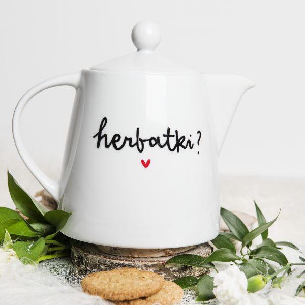 Nadzwyczajny, porcelanowy dzbanek z napisem - Herbatki?