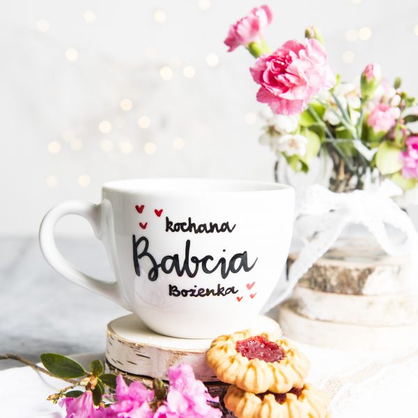 Kubek XL z napisem -Kochana Babcia .... - nadzwyczajny, porcelanowu kubek z wybranym przez Ciebie imieniem.