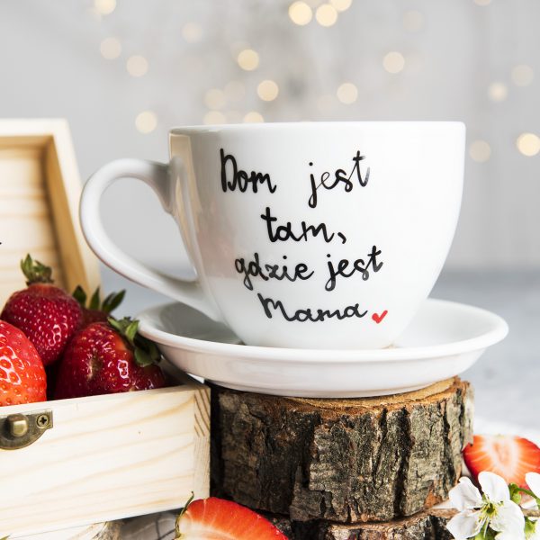 Nadzwyczajna, porcelanowa filiżanka XL z napisem - Dom jest tam, gdzie jest mama