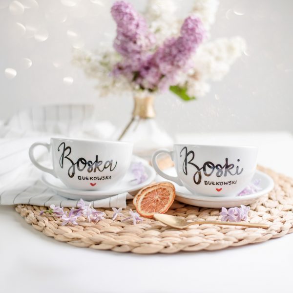 Zestaw filiżanek 250 ml - Boska / Boski z Twoim nazwiskiem