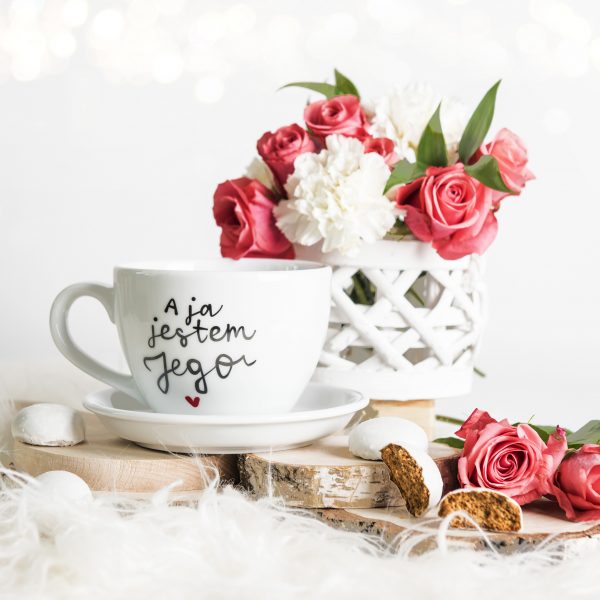 Nadzwyczajna, porcelanowa filiżanka XL z napisem - A ja jestem jego