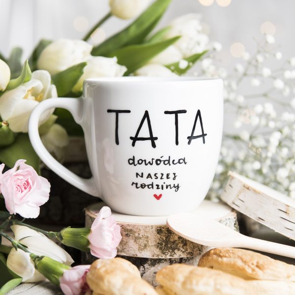Nadzwyczajny, porcelanowy kubek z napisem - Tata, dowódca naszej rodziny