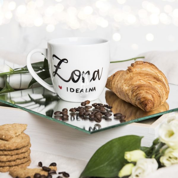 Nadzwyczajny, porcelanowy kubek z napisem - Żona idealna