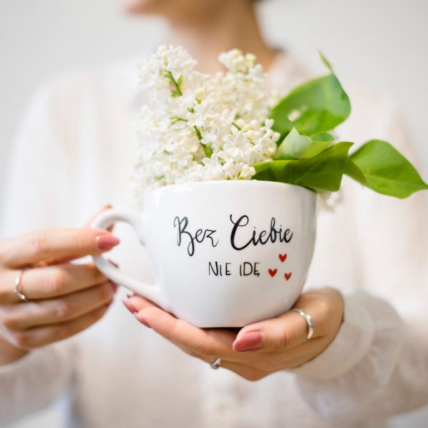 Nadzwyczajny, ręcznie zdobiony kubek 500ml - Bez Ciebie nie idę