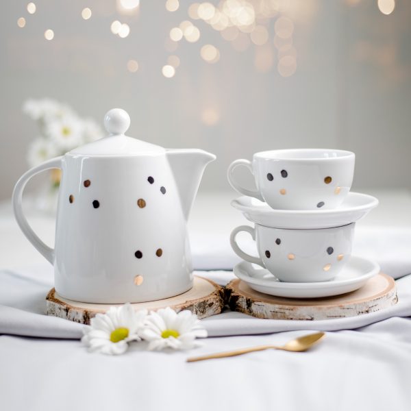 Nadzwyczajny, porcelanowy, ręcznie malowany Zestaw dzbanek + 2 filiżanki 250 ml - Kropy