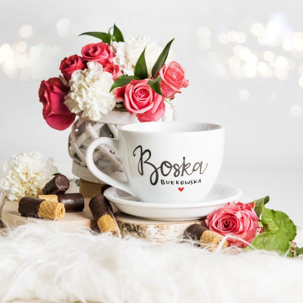 Nadzwyczajna, porcelanowa filiżanka XL z napisem -   Boska z Twoim nazwiskiem