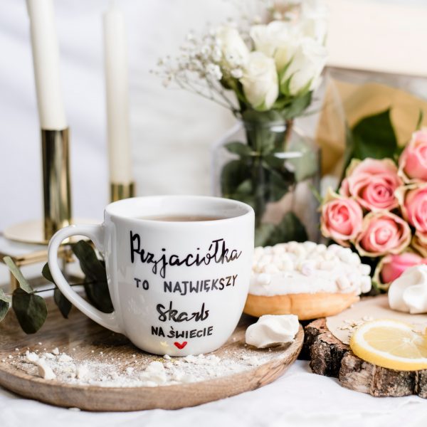 Nadzwyczajny, porcelanowy kubek z napisem - Przyjaciółka to największy skarb na świecie