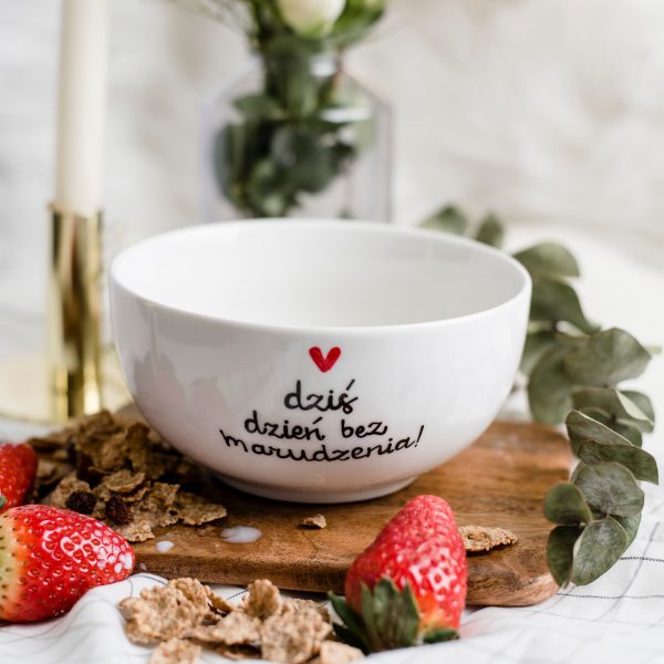 Nadzwyczajna, porcelanowa miska z napisem - Dziś dzień bez marudzenia!