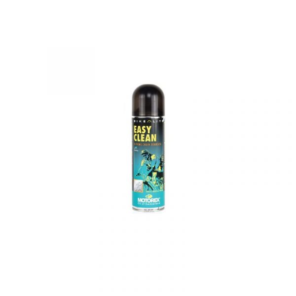 MOTOREX BIKE EASY CLEANBiodegradowalny odtłuszczacz do napędu roweru Motorex Easy Clean. Bardzo dobrze czyści wszystkie komponenty napędu rowerowego takie jak: łańcuch, wolnobieg, przednie tryby, przerzutki. Usuwa wszelkiego rodzaju brud oraz tłuste osady, penetruje nawet najmniejsze szczeliny. Pozostawia suchą powierzchnie, nie zostawia osadów. Nie powoduje korozji.Aplikacja: Rozpylić na elementy napędu, odczekać chwilę, wyszorować specjalną twardą szczotką lub pędzlem, po chwili spłukać wodą pod ciśnieniem. W przypadku dużego zabrudzenia powtórzyć całą operacje. Płyn można stosować do specjalnych maszynek do czyszczenia łańcucha.Po umyciu zabezpieczyć wyczyszczone elementy olejem DRY LUBE lub WET LUBE w zależności od przewidywanych warunków atmosferycznych w czasie jazdy.