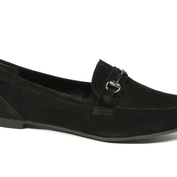 Eleganckie, skórzane mokasyny- cholewka ze skóry naturalnej zamszowej- metalowa ozdoba- wyściółka i wkładka ze skóry naturalnej- tęgość: standardowa- wysokość obcasa: 1 cm- podeszwa z termokauczuku