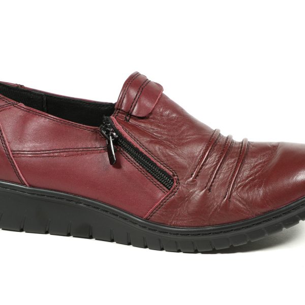 Komfortowe, skórzane, wsuwane półbuty na niskim, płaskim obcasie- cholewka ze skóry naturalnej licowej- wyściółka ze skóry na naturalnej- elastyczne taśmy ułatwiające zakładanie/ściąganie obuwia- dodatkowe zapięcie na suwak- komfortowa piankowa wkładka pokryta skórą naturalną- tęgość: podwyższona- wysokość obcasa: 3 cm- lekka, amortyzująca podeszwa z PU