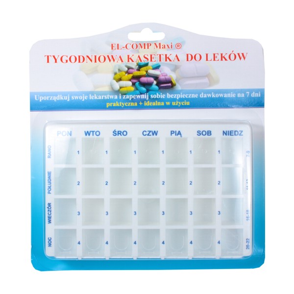 Kasetka do dawkowania leków tygodniowa KT-A, 1 sztuka, EL-COMP