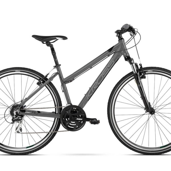 Rower KROSS Evado 2.0 damski 2020Kross Evado 2.0 to rower crossowy idealny do uniwersalnych zastosowań dla aktywnych kobiet, które jeżdżą po drogach asfaltowych i ścieżkach rowerowych, jak i na leśnych dróżkach i szutrach. Posiada lekką ramę z niskim przekrokiem wykonaną z aluminium, a geometrię zaczerpnięto z rowerów trekkingowych. Dzięki temu za kierownicą Evado 2.0 podróżujemy w pozycji wyprostowanej, nie obciążając kręgosłupa i przedramion. Takie ustawienie ciała rowerzystki pozwala również na lepszą obserwację drogi, ułatwia też jazdę w luźniejszej odzieży. Duże koła 28" płynnie pokonują nierówności, a komfort jazdy dodatkowo poprawia amortyzator przedni SR Suntour. Rower dostępny jest również w opcji męskiej.Napęd Krossa Evado 2.0 to sprawdzone komponenty Shimano gwarantujące bezawaryjność i niskie koszty eksploatacji. 21 biegów jest obsługiwanych przez tylną przerzutkę Shimano Altus. Mocne hamulce V-Brake są lekkie i bardzo proste w obsłudze i serwisie. Amortyzator przedni SR Suntour M3010 to sprawdzona konstrukcja nie wymagająca większych zabiegów serwisowych.