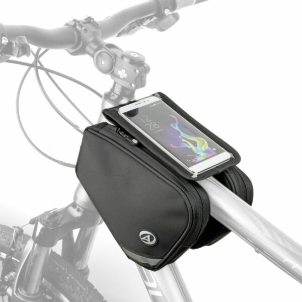 Author torba na ramę A-R282 MPPZestaw dwóch torebek do montażu na przód ramy ze specjalnym etui na smartphone dopinanym na rzep. Zapinane na zamek. Wykonane z materiału poliestrowego 420D PU odpornego na ścieranie i działanie wody. Wewnątrz wyścielone miękką pianką. Mocowanie do ramy za pomocą pasków z rzepem. Elementy odblaskowe dla poprawy bezpieczeństwa.Wymiary pojedynczej torebki: 20 x 4 x 14 cm.Wymiary etui na smartphone: 16 x 9 cm.