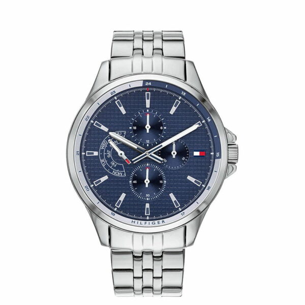 Zegarek Tommy Hilfiger 1791612 jest to zegarek męski. Zegarek wyposażony jest w mechanizm kwarcowy, w którym do odmierzania czasu stosuje się kryształ kwarcu drgający pod wpływem energii elektrycznej. Szkiełko mineralne zapewnia wysoką odporność na pęknięcia oraz zarysowania. Mechanizm zegarka został umieszczony w kopercie wykonanej z wysokiej jakości stali szlachetnej. Stalowa bransoleta w kolorze srebrnym podkreśla elegancki charakter zegarka. Wodoszczelność na poziomie 30 m (3 ATM, 3 Bar) zapewnia podstawową ochronę zegarka przed uszkodzeniem. Model zegarka objęty jest 2 letnią gwarancją producenta.