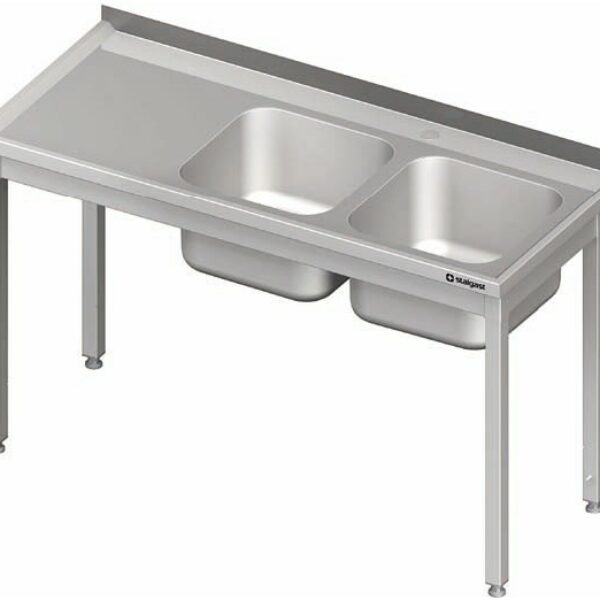 Stół ze zlewem dwukomorowym z prawej strony bez półki 1400x600x850 mm | STALGAST, 980776140