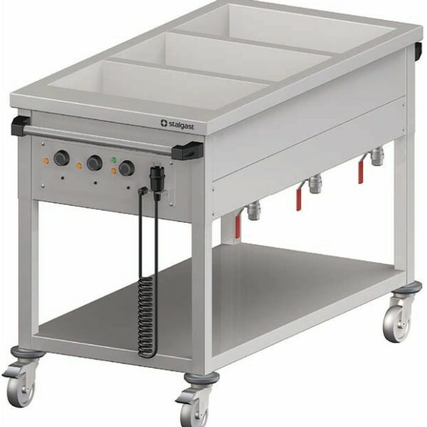 Bemar jezdny z półką 3-komorowy 3x GN 1/1 200 mm, zawór spustowy, niezależne ogrzewanie, 2,55 kW, 1205x600x850 mm | STALGAST, 982276126