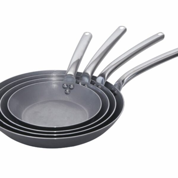 Okrągła patelnia z wysokiej jakości stali węglowej, perfekcyjna do szybkiego smażenia. Posiada wysokie, zaokrąglone ścianki i kąty pozwalające na łatwe zsunięcie potrawy na talerz oraz ergonomiczny, solidnie nitowany, wentylowany i nienagrzewający się uchwyt ze stali nierdzewnej. Stalowa patelnia po pewnym czasie staje się zupełnie czarna, co oznacza, że wytworzyła się w niej warstwa węglowej patyny odpowiedzialna za nieprzywieranie do patelni smażonych produktów. Perfekcyjnie przewodzi ciepło. Polecana do profesjonalnych kuchni o płytach indukcyjnych, gazowych elektrycznych i ceramicznych. Nie można myć w zmywarce. Natłuścić po umyciu. Grubość ścianki: 2,5 mm.
