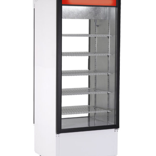 szafa chłodnicza przelotowa z drzwiami przeszklonymi nierdzewna przeznaczona jest do przechowywania artykułów spożywczych w obniżonej temperaturze oraz eksponowania produktu z możliwością otwarcia szafy od strony klienta. Wykończenie wnętrza wykonane jest ze stali nierdzewnej. Szafa posiada w komorze pięć półek. W standardzie występuje obieg grawitacyjny powietrza (brak wentylatora) oraz elektroniczny termostat z wyświetlaczem temperatury. Chłodzenie zapewnia energooszczędny hermetyczny układ chłodniczy. Jednym z jego elementów jest skraplacz, który należy utrzymywać w należytej czystości. Dostęp do skraplaczy w szafach znajduje się za otwieraną kratką maskującą. Odszranianie następuje automatycznie. Szafa wyposażona w oświetlenie pionowe.