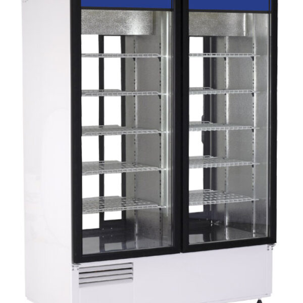 szafa chłodnicza przelotowa z drzwiami suwanymi przeszklonymi malowana proszkowo przeznaczona jest do przechowywania artykułów spożywczych w obniżonej temperaturze oraz eksponowania produktu z możliwością otwarcia szafy od strony klienta. Wykończenie wnętrza wykonane jest ze stali nierdzewnej. Szafa posiada wewnętrzną przegrodę tworzącą dwie komory połączone wspólnym układem chłodzenia. Każda komora wyposażona jest w pięć półek ale w zależności od potrzeb istnieje możliwość zamocowania większej ilości. Szafa z wymuszonym obiegiem powietrza (z wentylatorem) oraz elektronicznym termostatem z wyświetlaczem temperatury. Chłodzenie zapewnia energooszczędny hermetyczny układ chłodniczy. Jednym z jego elementów jest skraplacz, który należy utrzymywać w należytej czystości. Dostęp do skraplaczy w szafach znajduje się za otwieraną kratką maskującą. Odszranianie następuje automatycznie. Szafa wyposażona w oświetlenie pionowe.