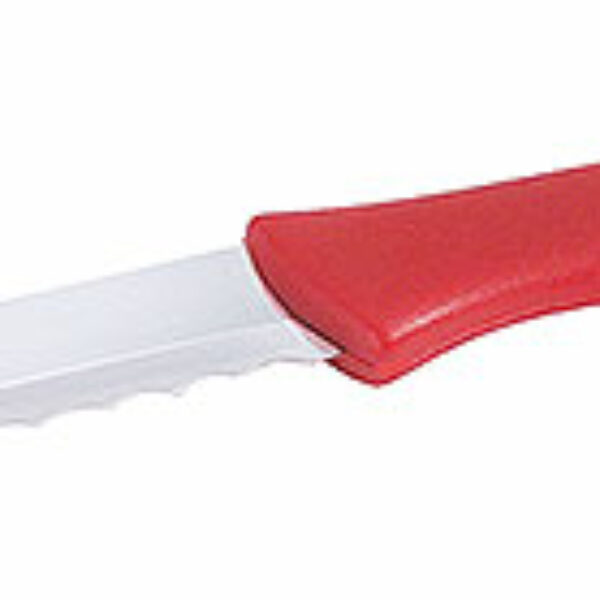 • Nóż o ząbkowanym ostrzu ze stali nierdzewnej 18/0 o długości 85 mm• Z czerwonym, plastikowym uchwytem
