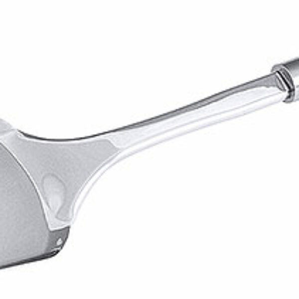 • Szufelka chińska o wymiarach 90 x 85 mm wykonana z polerowanej stali nierdzewnej z satynowym uchwytem z uszkiem do zawieszenia