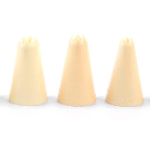 Karbowane końcówki do rękawów, wykonane z polipropylenu. Średnica końcówek: 3-5-7-9-11-13-15 mm.